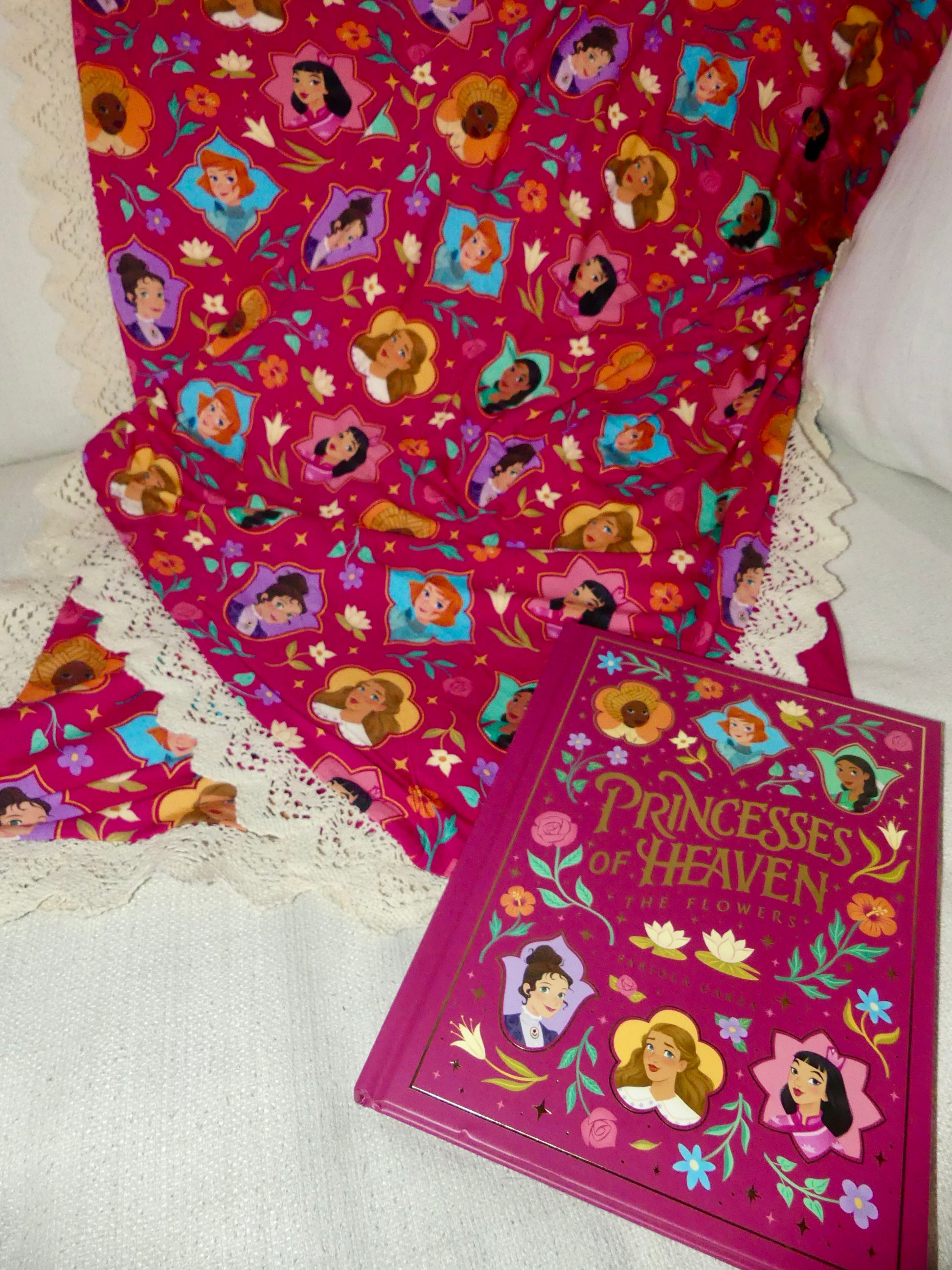 This luxuriously soft organic bamboo blanket is the perfect companion for your little princess – large enough for YOU to snuggle up with her, or for her to wrap around herself and her siblings while reading the Princesses of Heaven™ book together.